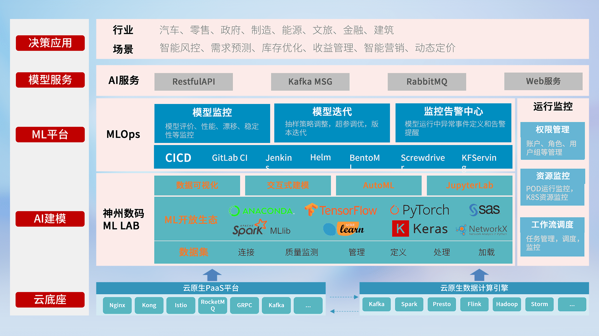 数据+模型双引擎驱动,,面向智能服务场景,,,快速灵活利用AI技术,,支持业务决策,,,助力企业智能化转型破局。。